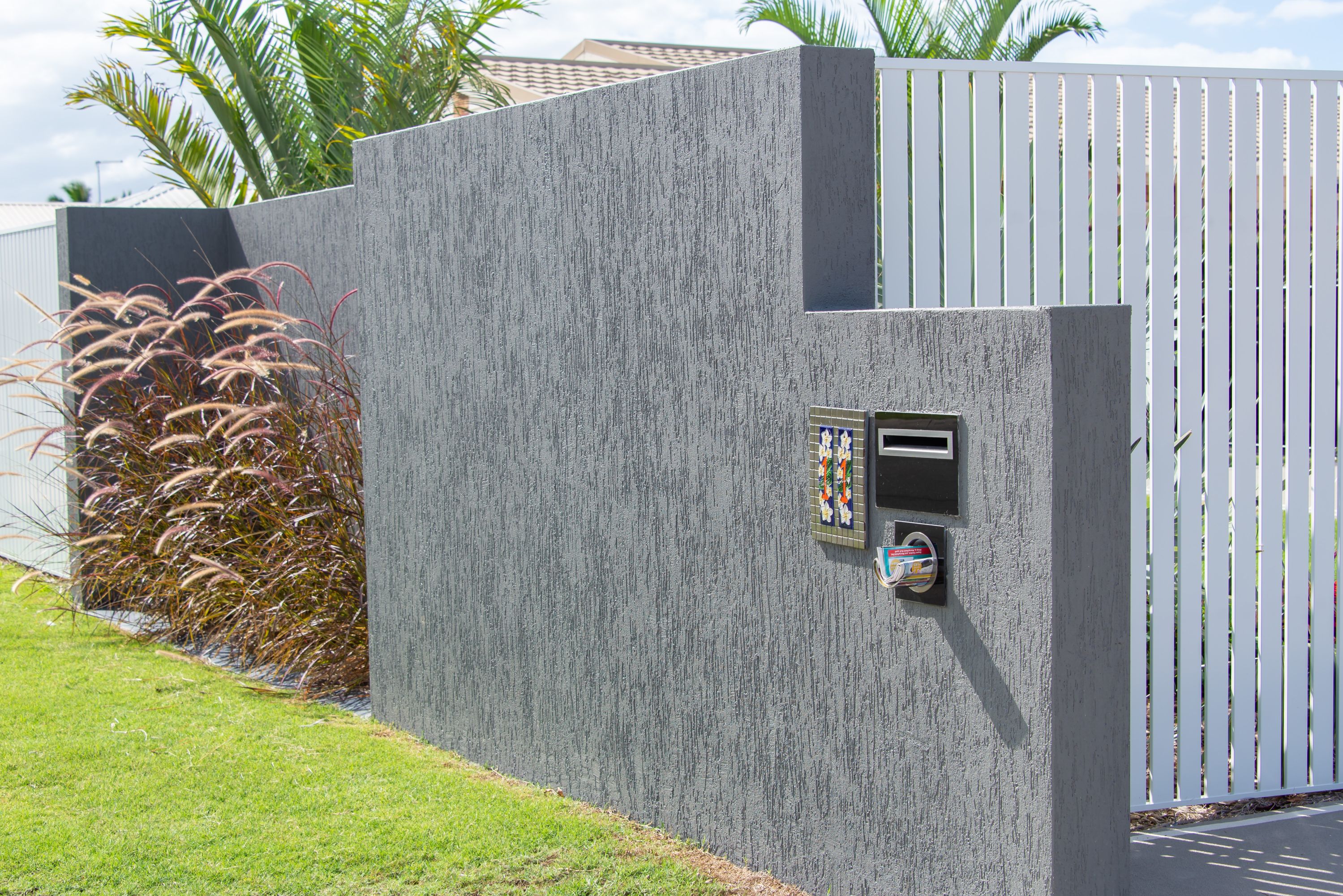 - New front rendered block fence with aluminium inserts and pedestrian gate
