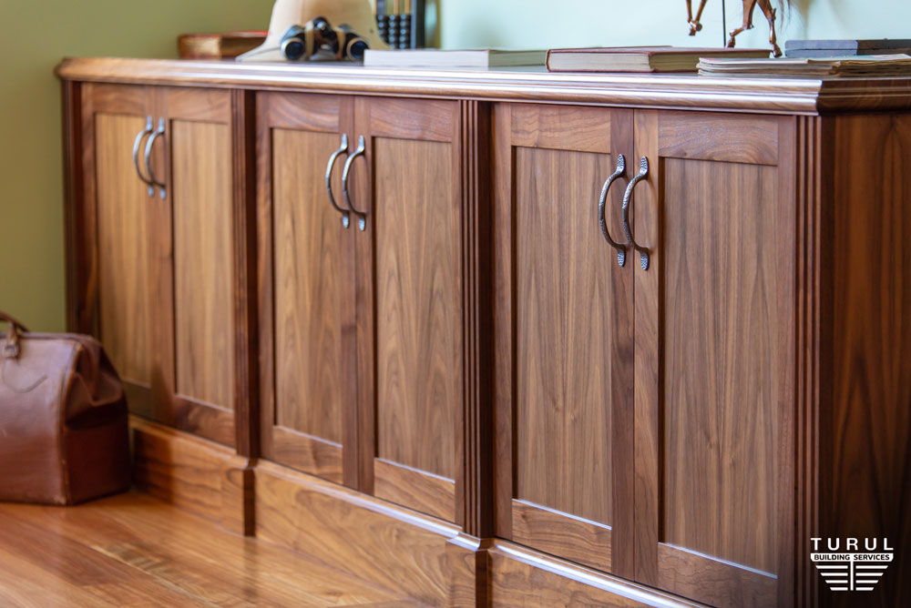 Our Solution: Andrew met with the client, who shared her dream of having her own private library. Her vision was for a traditional old English library. Andrew was extremely excited with the prospect of taking on such a special job, as these types of projects are quite rare. We engaged a Draftsman to have design plans drawn for the extension to the house for the proposed library. We also engaged a custom furniture builder to design the library cabinetry, fire place mantel and storage. After accepting the Quote, the next step was to confirm the design for the extension, cabinetry and flooring.