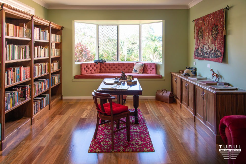 Check out this library built by our Burpengary builders. We think you’ll like what you see. Get in touch with Andrew at 0408 088 785 today to get started with your own home extension project!